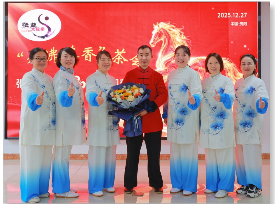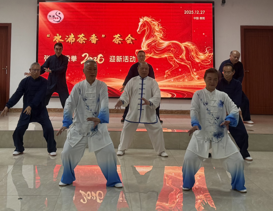 骏马奔腾迎新春,春风得意送福来。2025年12月27日,“水沸茶香”感师恩茶会在省科普教育基地贵州茶叶科技馆温馨举办,本次活动汇聚了来自贵州日报、省农业农村厅、省中医药大学等16家单位的拳友同仁。茶会的举办由贵州省茶叶研究所、贵州省茶叶学会、刘晓霞技能大师工作室支持。茶会现场,众人围坐座谈,分享习练太极拳的心得体会与健康感悟,表达对师长的诚挚感谢。随后,拳友们按单位或习练项目分组进行了太极拳汇报展示,动作行云流水,拳韵绵长,充分展现了太极文化的魅力与修养。活动中,大家品鉴了贵州省茶叶研究所“黔湄601”红茶,以及评茶技能大师工作室的创新产品“青馨茶”,煮熬了一壶老白茶、一壶六堡茶,还品尝了富有地方特色的黔北油茶,在茶香氤氲中进一步交流情谊,共话新年愿景。最后,参会人员在温馨愉快的氛围中合影留念,为此次活动画上了圆满的句号。茶会不仅弘扬了太极文化与茶文化,也搭建了跨单位交流的友谊平台。